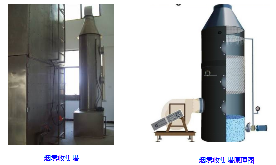 烟雾的收集和洗涤烟尘装置:采用SUS#304不锈钢,直径为800mm高度为3500mm。烟雾收集塔分为三部分:喷淋装置、烟尘过滤装置、排烟装置。喷淋装置:为特种过滤材料提供喷水,保持特种过滤材料有效地过滤烟尘。烟尘过滤装置:采用饮用水之过滤材料过滤,能有效的过滤烟尘使排出的烟为白色烟雾,完全符合环保要求,便于清洗和更换,并配送二套。排烟装置:装有大功率的排风扇,执行强制性排风,并且安装有电动闸门能控制风的流速。