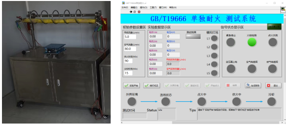 1.GB/T 19216单独耐火测试装置由不锈钢测试柜、燃烧器、不锈钢试样安装架、电气部件等部分组成;