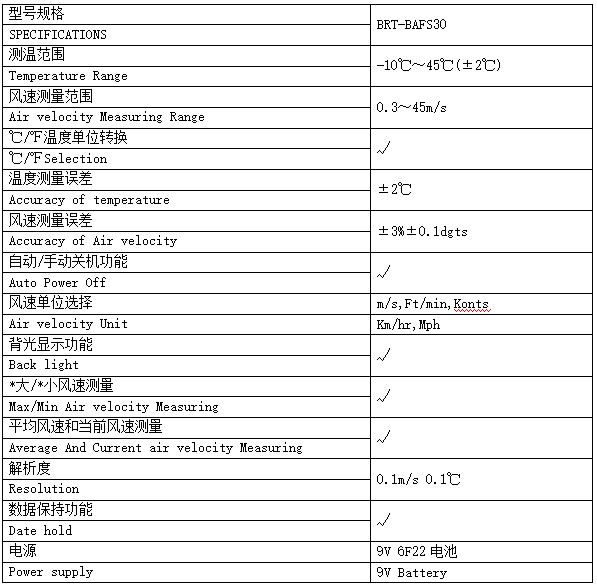 BRT-BAFS30型便携式叶轮风速计可用于露天及管道出口端测量风速,采取机身与叶轮分开独立设计,叶轮部件采取USB插件,方便用户在使用对配件的独立保管和后期更换保养维护,本机可测量*大、当前值、平均风速、风温测量,风速反应模拟条显示。