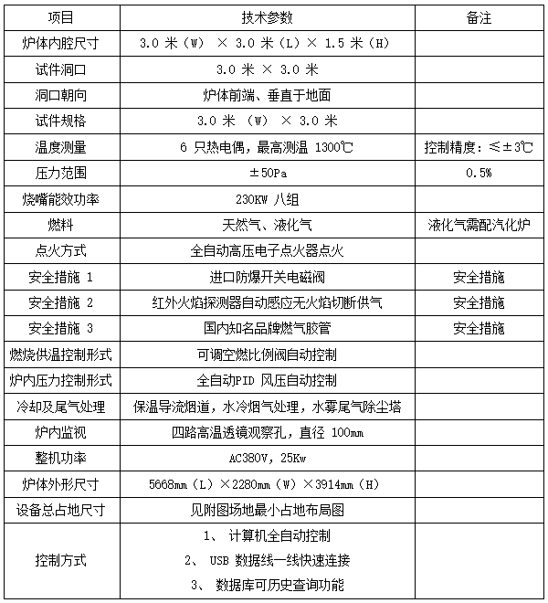 本试验炉测试功能上完全满足现行试验标准 GB/T 9978-2008《建筑构件耐火试验方法》的测试要求。